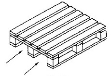 該卡板只有從前后兩個方向進行叉車作業(yè),故稱面進叉木卡板。